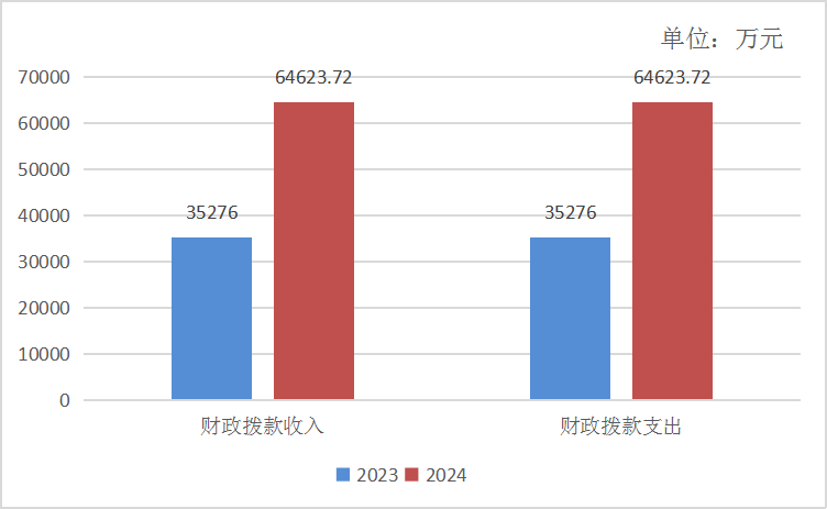 2024年度财政拨款收、支总计均为64623.72万元。与2023年度相比,财政拨款收、支总计各增加29347.72万元,增长83.19%。主要变动原因是2024年度项目支出较多。