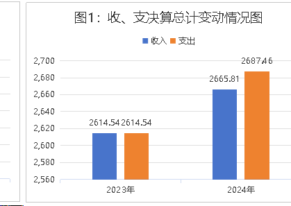 2024年度收、支总计分别为2665.81、2687.46万元。与2023年度相比,收、支总计各增加51.27、72.92万元,增长1.96%、2.79%。主要变动原因是项目增加。