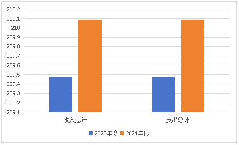 2024年度收、支总计均为210.09万元。与2023年度相比,收、支总计各增加0.61万元,增长0.29%。主要变动原因是人员新增。
