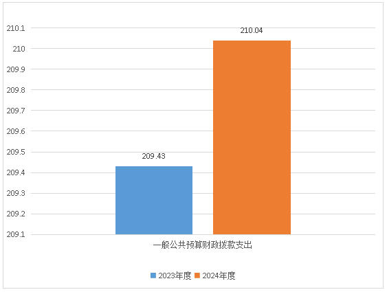 2024年度一般公共预算财政拨款支出210.04万元,占本年支出合计的99.98%。与2023年度相比,一般公共预算财政拨款支出增加0.61万元,增长0.29%。主要变动原因是人员增加。