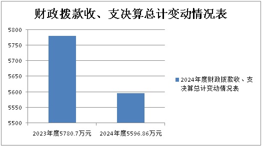 2024年度财政拨款收、支总计均为5596.86万元。与2023年度相比,财政拨款收、支总计各减少183.84万元,下降3.2%。主要变动原因是项目收入、支出减少。