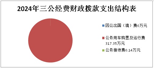 2024年度“三公”经费财政拨款支出决算中,因公出国(境)费支出决算0万元,占0%;公务用车购置及运行维护费支出决算317.35万元,占99.9%;公务接待费支出决算0.14万元,占0.1%。具体情况如下:
