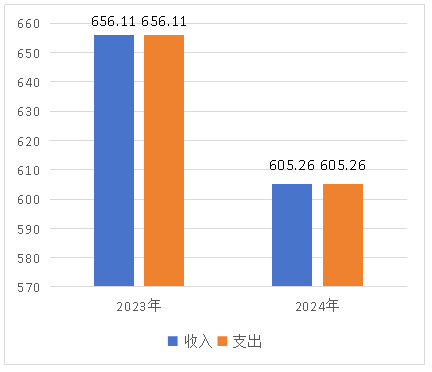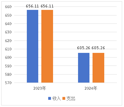 2024年度收、支总计均为605.26万元。与2023年度相比,收、支总计各减少50.85万元,下降7.75%。主要变动原因是项目减少。