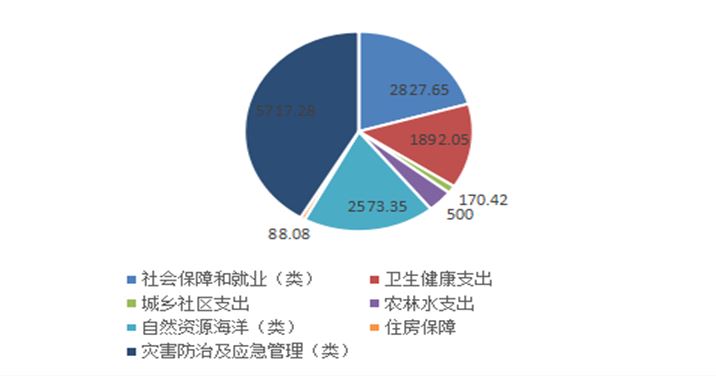 2024年度一般公共预算财政拨款支出13768.84万元,主要用于以下方面:社会保障和就业支出2827.65万元,占20.54%;卫生健康支出1892.05万元,占13.74%;城乡社区支出170.42万元,占1.23%;农林水支出500万元,占3.63%;自然资源海洋(类)支出2573.35万元,占18.69%;住房保障支出88.08万元,占0.64%;灾害防治及应急管理(类)支出5717.28万元,占41.53%。