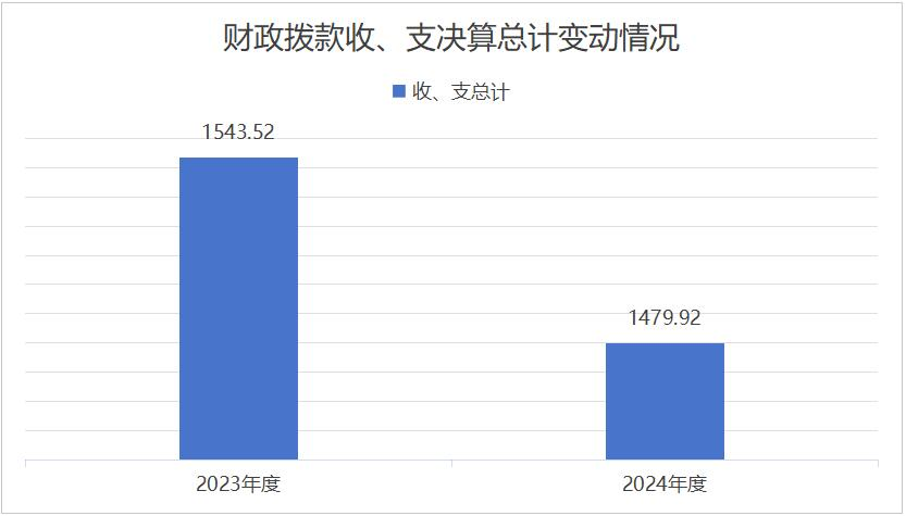 2024年度财政拨款收、支总计均为1479.92万元。与2023年度相比,财政拨款收、支总计各减少63.6万元,下降4.12%。主要变动原因是财政拨款收入减少。