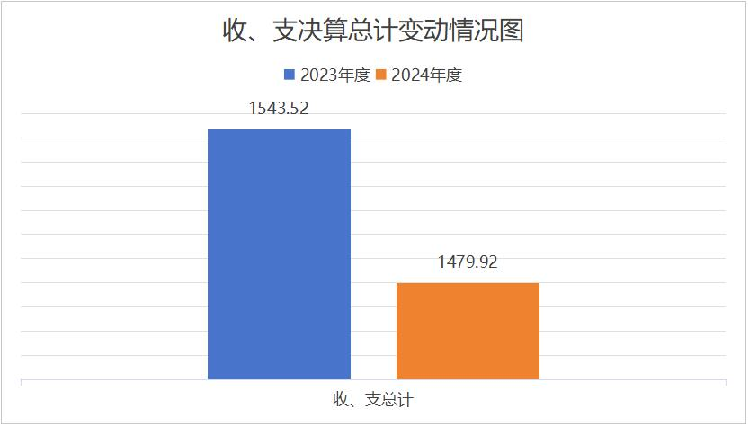 2024年度收、支总计均为1479.92万元。与2023年度相比,收、支总计各减少63.6万元,下降4.12%。主要变动原因是财政拨款收入减少。
