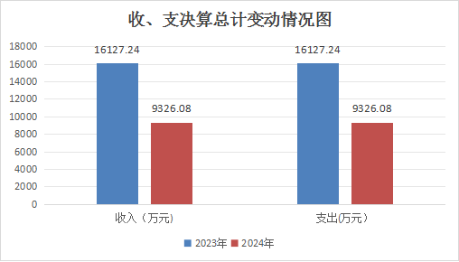 2024年度收、支总计均为9326.08万元。与2023年度相比,收、支总计各减少6801.16万元,减少42.17%。主要变动原因是交通建设项目减少。
