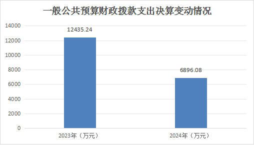 2024年度一般公共预算财政拨款支出6896.08万元,占本年支出合计的73.94%。与2023年度相比,一般公共预算财政拨款支出减少5529.16万元,下降44.50%。主要变动原因是交通建设项目减少。