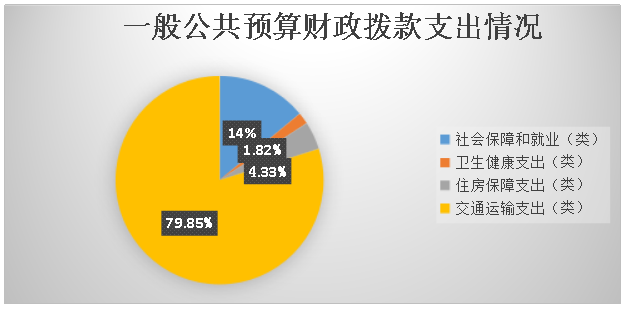 2024年度一般公共预算财政拨款支出826.28万元,主要用于以下方面:交通运输支出659.75万元,占79.85%;社会保障和就业支出115.71万元,占14%;住房保障支出35.82万元,占4.33%;卫生健康支出15万元,占1.82%。