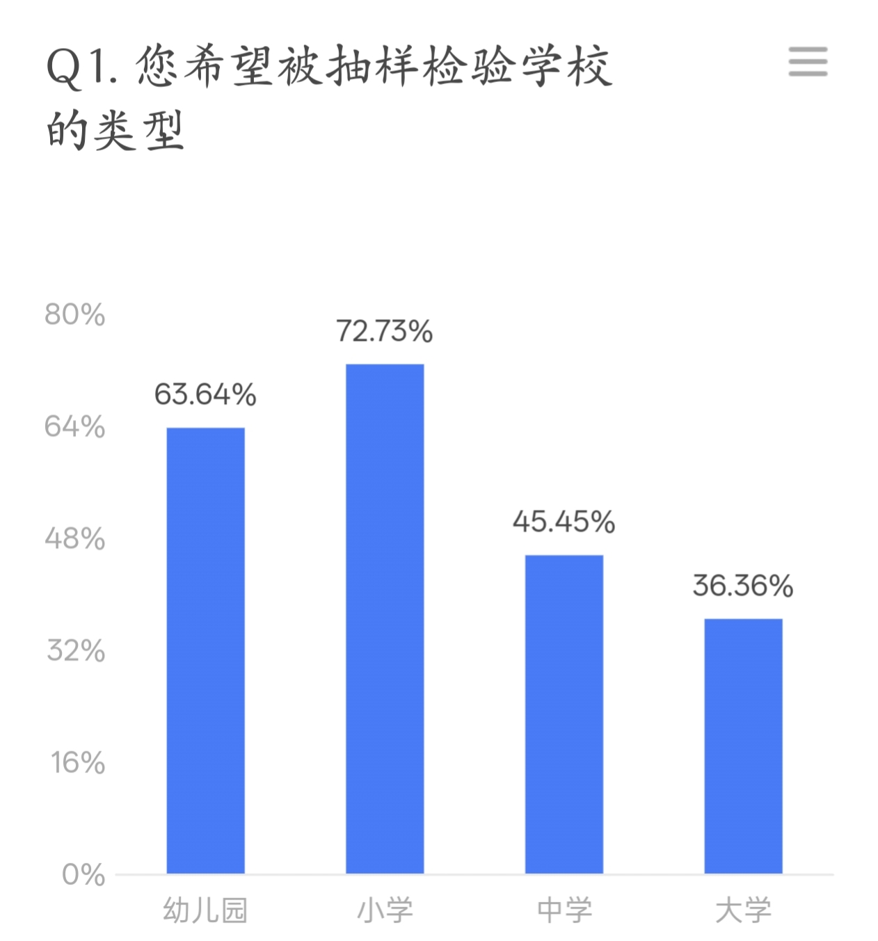 9月15日—9月21日,利州区市场监督管理局组织开展了2025年校园食品安全“你点我检”网上问卷调查。调查内容主要是征集师生、家长关心的校园食品品种,旨在维护健康良好的校园饮食环境,切实保障在校师生饮食安全。现将问卷调查情况公告如下: