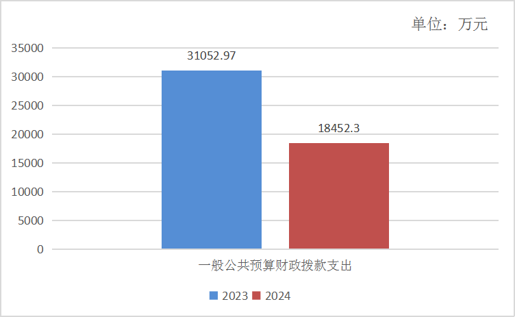 2024年度一般公共预算财政拨款支出18452.3万元,占本年支出合计的28.55%。与2023年度相比,一般公共预算财政拨款支出减少12600.67万元,下降40.58%。主要变动原因是2024年度一般公共预算财政拨款支出中项目支出较上年减少。