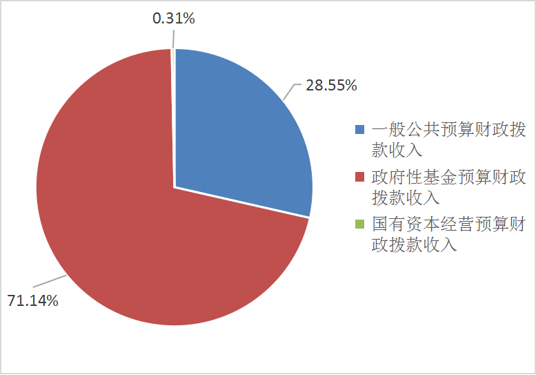 2024年度本年收入合计64623.72万元,其中:一般公共预算财政拨款收入18452.3万元,占28.55%;政府性基金预算财政拨款收入45970.79万元,占71.14%;国有资本经营预算财政拨款收入200.63万元,占0.31%。