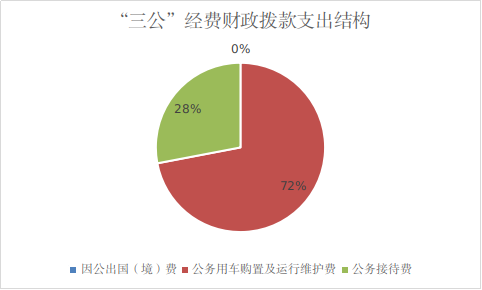 2024年度“三公”经费财政拨款支出决算中,因公出国(境)费支出决算0万元,占0%;公务用车购置及运行维护费支出决算3.24万元,占71.84%;公务接待费支出决算1.28万元,占28.16%。具体情况如下: