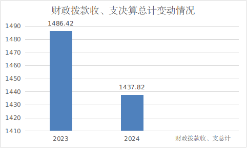 2024年度财政拨款收、支总计均为1437.82万元。与2023年度相比,财政拨款收、支总计各减少48.97万元,增长/下降3.30%。主要变动原因是2024年项目收入支出较上年减少。