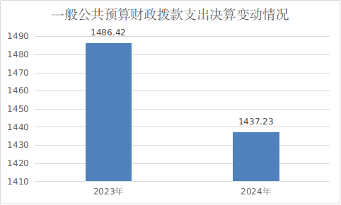 2024年度一般公共预算财政拨款支出1437.23万元,占本年支出合计的99.96%。与2023年度相比,一般公共预算财政拨款支出减少49.19万元,下降3.31%。主要变动原因是减少了项目支出。