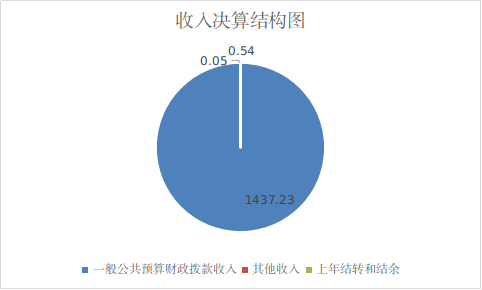 2024年度本年收入合计1437.82万元,其中:其中:一般公共预算财政拨款收入1437.23万元,占99.96%;其他收入0.54万元,占0.04%。上年结转和结余0.05万元,占0%。