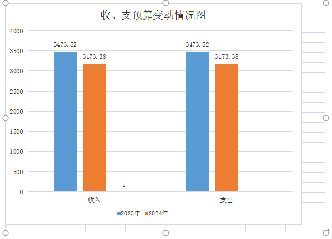 2024年度收、支总计均为3173.38万元。与2023年度3473.52万元相比收、支总计各减少300.14万元,下降9.46%。主要变动原因是人员减少。