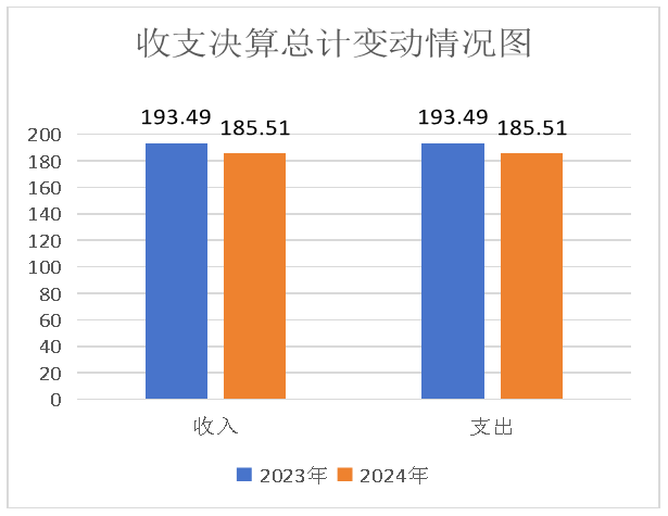 2024年度财政拨款收、支总计均为185.51万元。与2023年度相比,财政拨款收、支总计各减少7.98万元,下降4.12%。主要变动原因是项目减少。