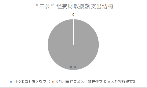 2024年度“三公”经费财政拨款支出决算中,因公出国(境)费支出决算0万元,占0%;公务用车购置及运行维护费支出决算0万元,占0%;公务接待费支出决算0.91万元,占100%。具体情况如下: