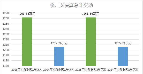 2024年度财政拨款收、支总计均为1205.69万元。与2023年度1261.86万元相比,财政拨款收、支总计各减少56.17万元,下降4.45%。主要变动原因是人员类基本支出减少,压减人大项目资金支出。