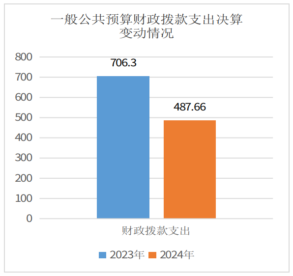 2024年度一般公共预算财政拨款支出487.66万元,占本年支出合计的100%。与2023年度相比,一般公共预算财政拨款支出减少218.64万元,下降30.96%。主要变动原因是项目支出减少。