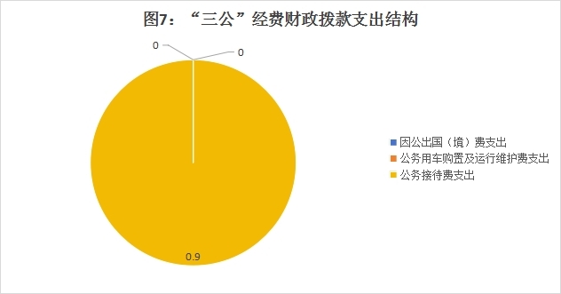 2024年度“三公”经费财政拨款支出决算中,因公出国(境)费支出决算0万元,占0%;公务用车购置及运行维护费支出决算0万元,占0%;公务接待费支出决算0.90万元,占100%。具体情况如下: