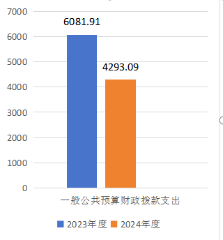 2024年度一般公共预算财政拨款支出4293.09万元,占本年支出合计的99.99%。与2023年度相比,一般公共预算财政拨款支出减少1788.82万元,下降29.41%。主要变动原因是2024年度一般公共预算财政拨款支出预算减少。