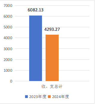 2024年度收、支总计均为4293.27万元。与2023年度相比,收、支总计各减少1788.86万元,下降29.41%。主要变动原因是2024收、支预算减少。
