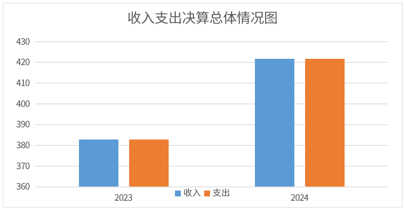 2024年度收入、支出总计均为421.78万元。与2023年度相比,收、支总计增加38.81万元,增长10.13%。主要变动原因是其他收入和结转结余增加。