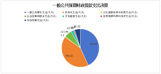 2024年度一般公共预算财政拨款支出1693.57万元,主要用于以下方面:一般公共服务支出729.09万元,占43.1%;农林水支出706.35万元,占42%;文化旅游体育与传媒支出5.2万元,占0.3%;社会保障和就业支出111.96万元,占6.6%;卫生健康支出42.24万元,占2.4%;自然资源利用与保护支出14.4万元,占0.08%;住房保障支出84.33万元,占4.9%。