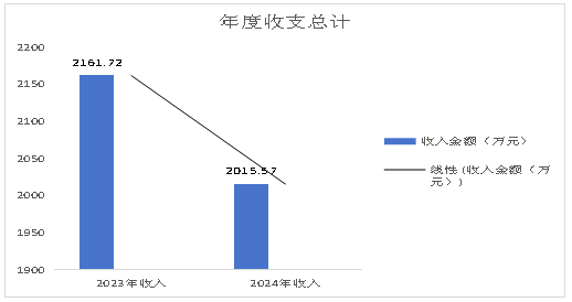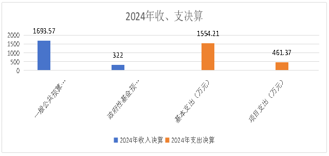 2024年度收入情况:2024年度总收入2015.57万元,其中:一般公共预算财政拨款收入1693.57万元,占总收入的84%;政府性基金预算财政拨款收入322万元,占总收入的16%。与2023年相比,财政拨款收入减少146.15万元,同比减少7%。