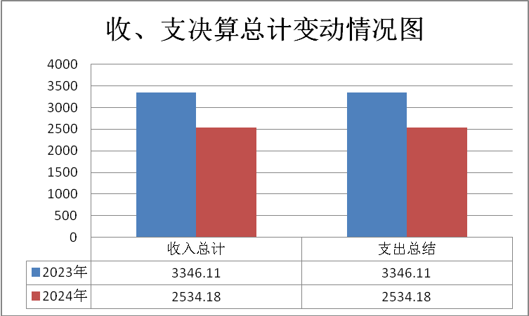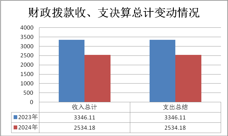2024年度财政拨款收、支总计均为2534.18万元。与2023年度相比,财政拨款收、支总计各减少811.93万元,下降24.26%。主要变动原因是政府性基金预算项目减少、项目支出减少、基本支出减少。