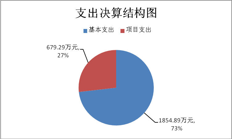 2024年度本年支出合计2534.18万元,其中:基本支出1854.89万元,占73.19%;项目支出679.29万元,占26.81%。